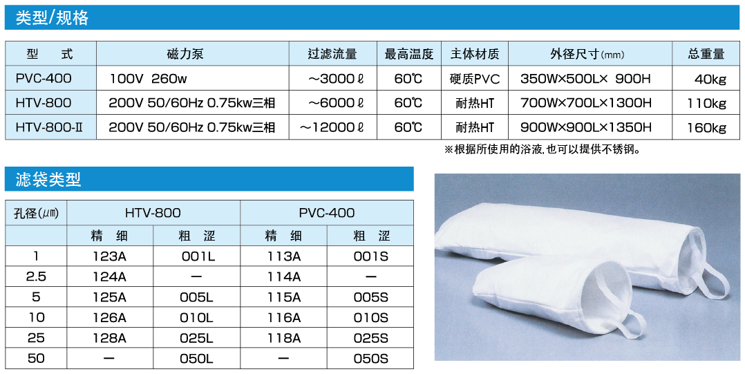 袋式过滤器使您可以选择从微滤到粗滤的过滤精度。